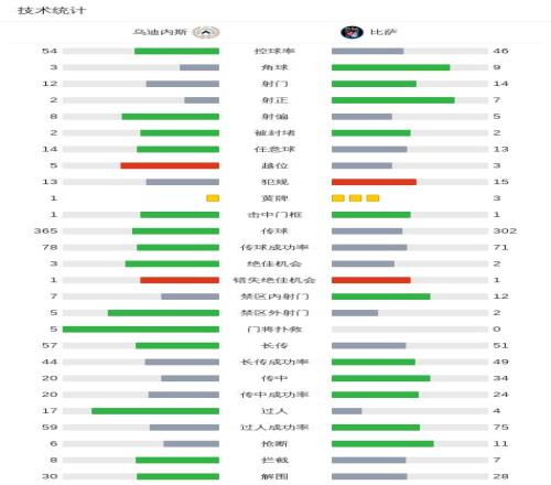 北京时间1月10日意大利足球顶级联赛 联赛 第20轮,乌迪内斯主场对阵比萨。乌迪内斯卡巴瑟利破门,凯南-戴维斯破门。比萨特拉莫尼破门,亨里克-迈斯特破门。最终比分乌迪内斯 2-2 比萨。