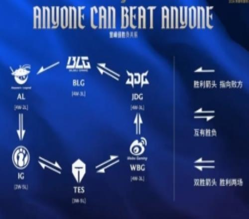 体育资讯1月31日称 在今天官方直播流给出的数据图中,登峰组六支战队已经形成了胜负闭环,其中AL双杀IG;WBG双杀JDG;JDG双杀BLG。